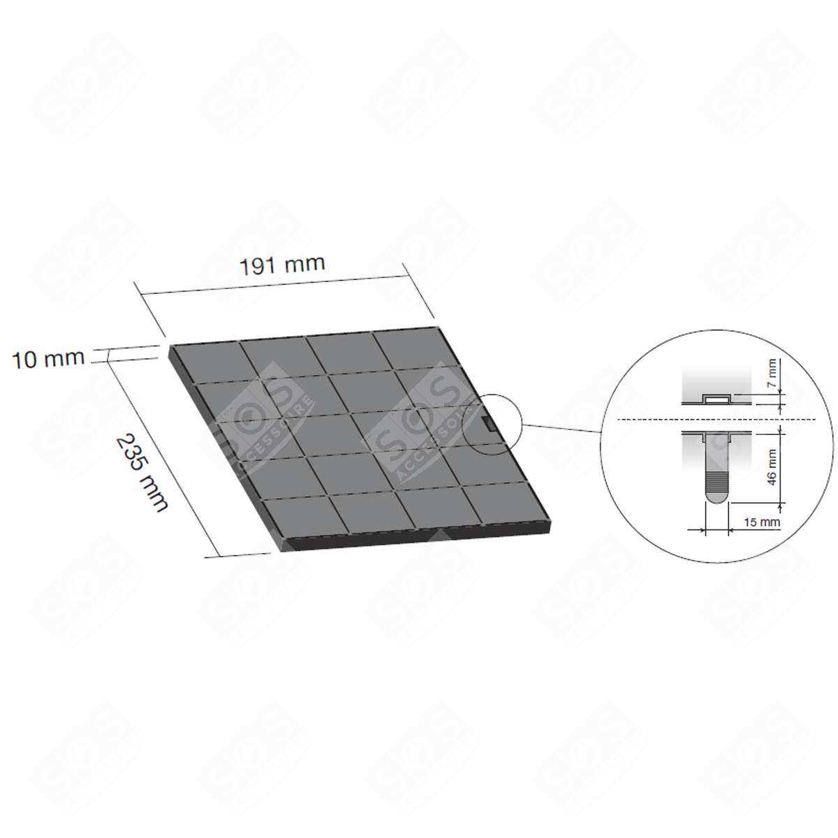 Filtre à charbon 235X190X10 mm pour hotte ELECTROLUX - Référence 33005521Ce filtre à charbon, est idéal pour les hottes à recyclage ELECTROLUX fonctionnant en circuit fermé. Vendu à l’unité, il est conçu pour un filtrage optimal des mauvaises odeurs grâce à son charbon actif de haute qualité. Son format rectangulaire de 235X190X10 mm permet une fixation facile et rapide, garantissant une installation sans effort. Pour maintenir une efficacité maximale de votre hotte de cuisine, nous conseillons de remplacer ce filtre tous les 3 à 6 mois, en fonction de la fréquence d’utilisation. Optez pour ce filtre à charbon d’origine pour prolonger la durée de vie de votre hotte et profiter d’un air toujours frais et pur dans votre cuisine.